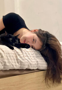 งานอดิเรก รูปแบบงานอดิเรกที่เธอนั้นชื่นชอบตอนที่เธอนั้นเดินทางไปอาศัยอยู่ในต่างประเทศ เธอนั้นมีงานอดิเรกที่ชัดเจนในการไปเที่ยว การอยู่กับเพื่อนและการเลี้ยงสัตว์เลี้ยงที่เธอนั้นโปรดปราน นอกเหนือจากนี้เธอนั้นยังชื่นชอบไปเที่ยวสถานที่งานศิลปะแล้วไปเที่ยวท้องทะเลตามธรรมชาติ เป็นอะไรที่เธอชอบมากในการเดินทางและเธอตื่นเต้นทุกครั้งเมื่อได้ออกไป